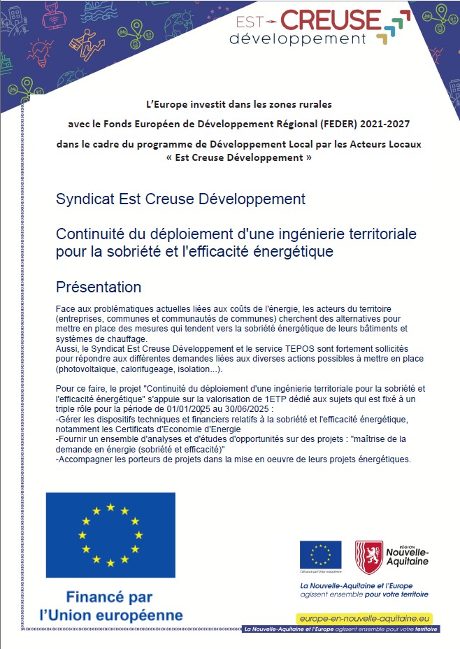 Projets cofinancés ou financés par l’Union Européen via le GAL Est Creuse Développement programme DLAL- Leader 21-27 :